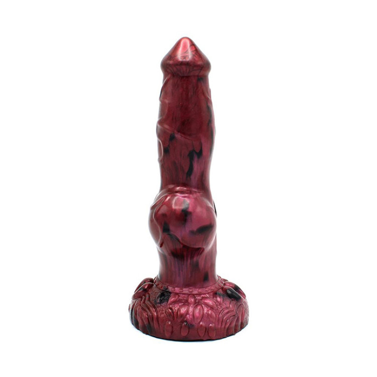 Den kraftige formen bygger seg gradvis ned fra en solid stamme til en imponerende, knotty base. Overflaten er rikelig teksturert og designet for å gi deg maksimal kontakt og tydelig stimulering. Dildoen har en solid sugekoppbase som står stødig enten du utforsker vaginalt eller analt.