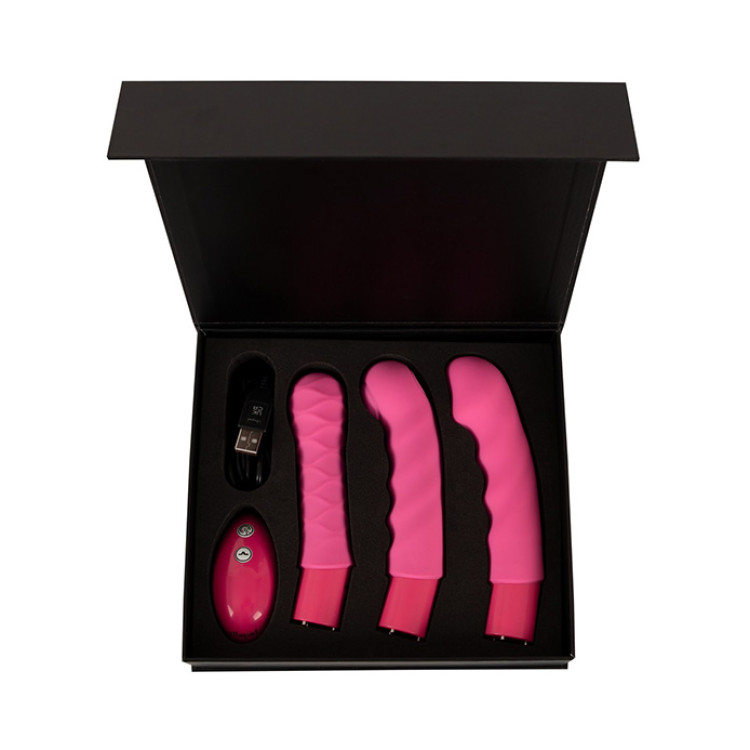 Setet har et integrert vibropanel som pulserer rytmisk mot vulva og klitoris med 13 ulike thump-funksjoner. Samtidig kan du feste én av de tre utskiftbare silikonvibratorene for dypere stimulering: en som støter, en som vibrerer og en som gir presise tapping-impulser.